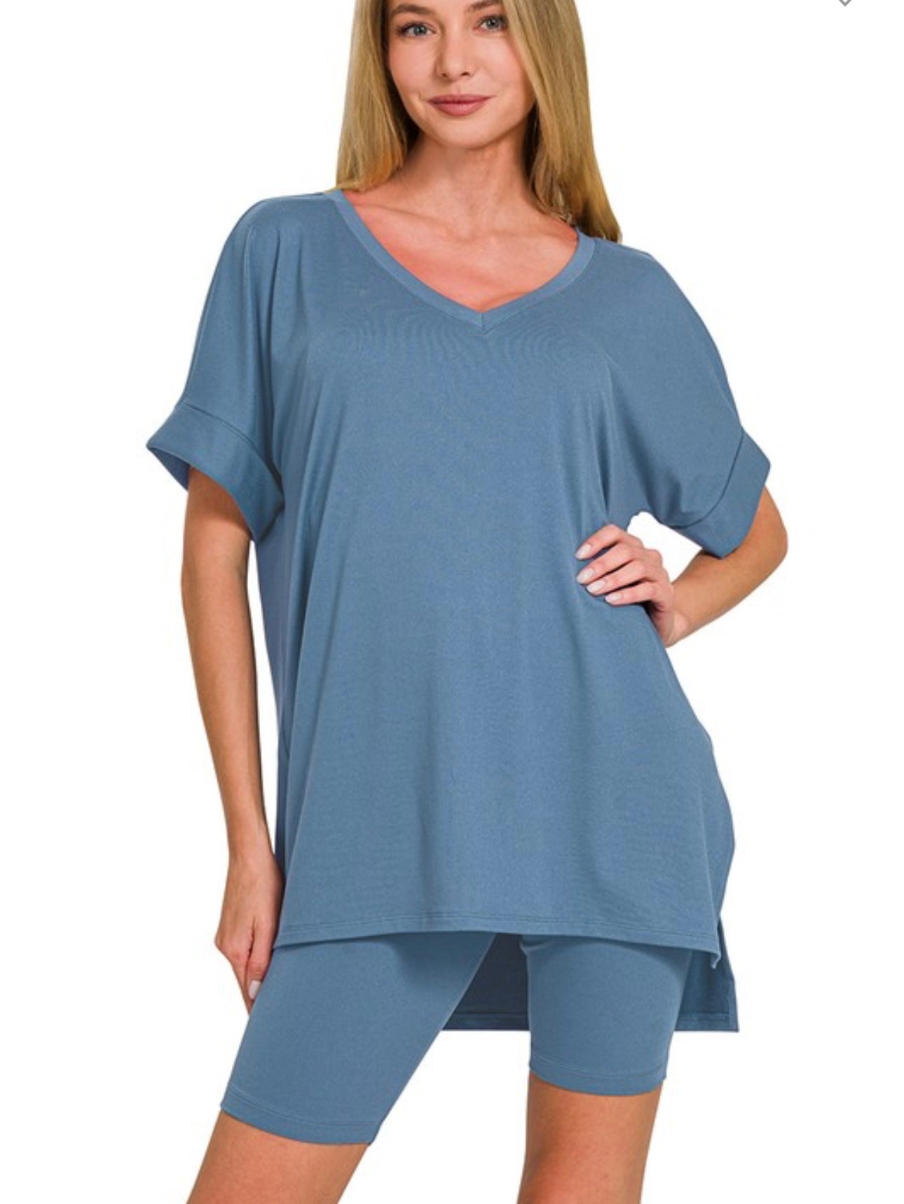 Microfier V-Neck Short Sleeve Hi-Low Hem